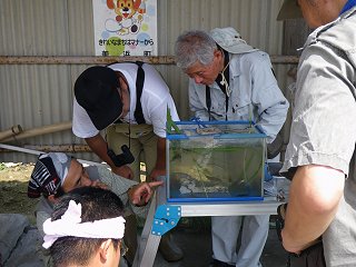 【左】門脇水族館で観察です。 【右】本日のトップモデル