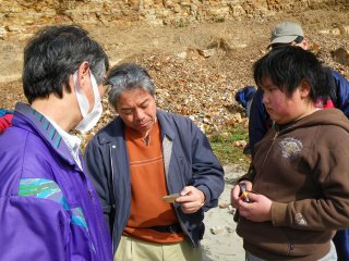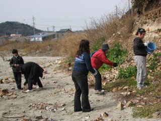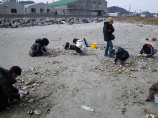 【中】砂浜で分解した岩石を元の位置に戻しました。