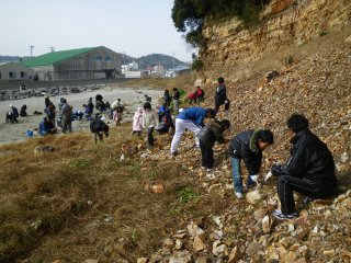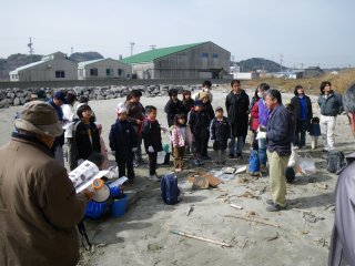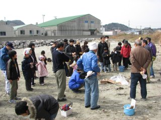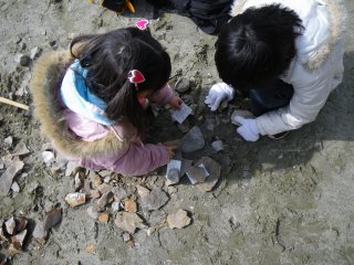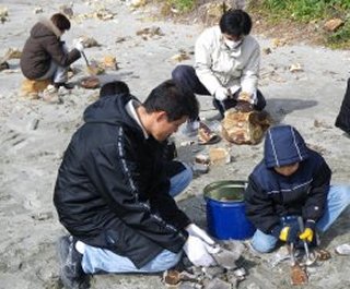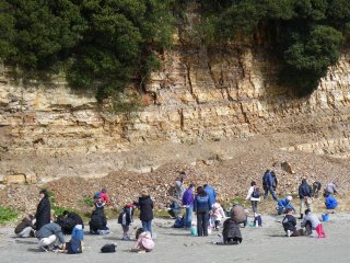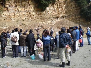 今回の化石採集は、例年行っていた潮蔵の裏の崖から、チッタナポリ裏の崖に場所を移して行われました。河原指導員はじめ、木下、鈴木、日比野の3名の先生方の指導のもと、安全に気をつけながら化石採集を行いました。見つけた化石の中には、この地域の化石を特徴付けるシロウリガイなどの深海性のものもありました。今年も化石大好きな親子が大勢集まって、楽しい化石採集と観察を行うことができたと思います。(記・永田)