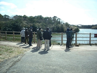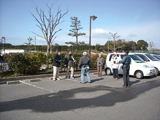【左】美浜町総合体育館前に集合です。 【右】歩きながらの鳥探し