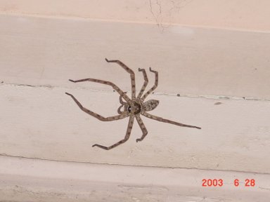 【右】社の壁にいたアシダカグモ ゴキブリをたくさん取ってくれるそうです。
