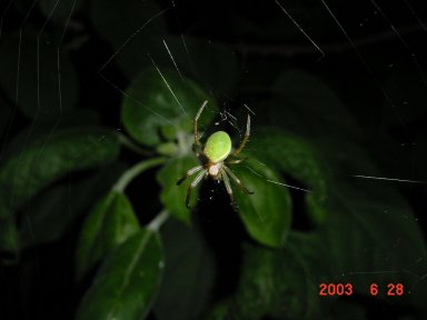 【右】サツマノミダマシという美しいクモさん サツマノミとはハゼ(かぶれ)の実のことです。