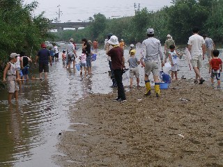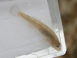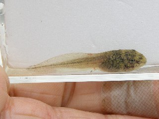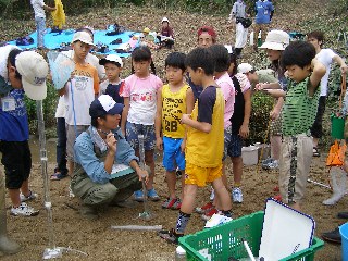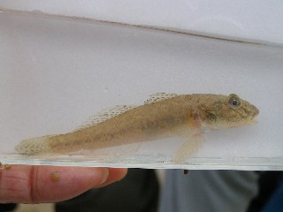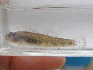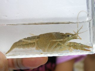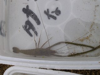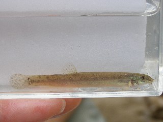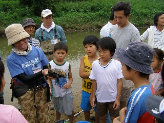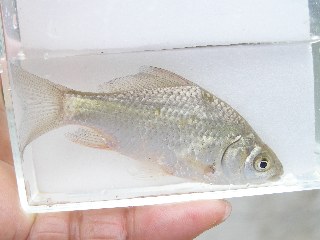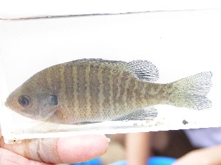 【中】ブルーギル。アメリカ原産の魚で繁殖力が旺盛で、動物植物何でも食べて、子供を大事に育てます。困った魚です。