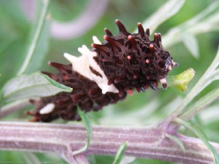 【右】川の土手にジャコウアゲハの幼虫がいました。
