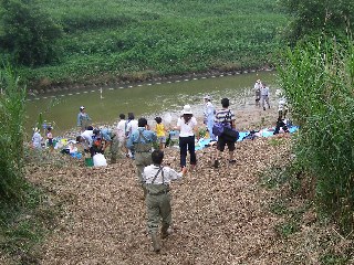 【右】環境課の人がきれいに草刈をしてくれました。両端の植物はセイコノヨシといって関西の多い植物で愛知には少ないです。