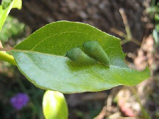 【左】アオスジアゲハ幼虫  【右】観察会風景