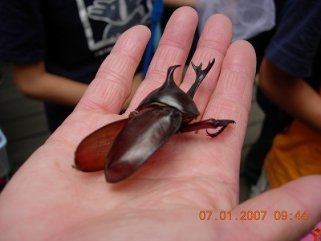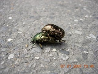 【右】砂利舗装道で見つけたカナブンです。