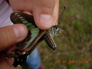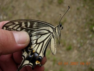 【左】飛翔していたキアゲハ(♀)を捕まえました。