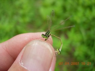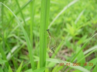 【中】交尾中のアジアイトトンボを観察しています。