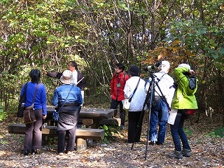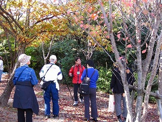 セレトナの会議室で説明と恒例の野鳥クイズをしてから出発。林の小道では落葉樹と常緑樹の林の違いやハゼノキなどの紅葉について観察しながら、平戸池にまわると コガモやバン・カイツブリなどが観察でき、増田池ではコサギ・アオサギ・カルガモなどのおなじみの鳥やイソシギもゆっくり観察できました。11月下旬とはいえ日差しは暖かく、紅葉も盛りでキチョウなどの昆虫も見られました。会議室でまとめをし25種の鳥が確認でき、まとめをして終わりました。(記:板倉)