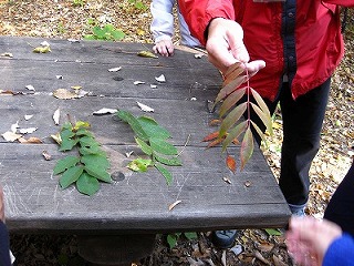 【左】コナラを見ながら 【右】ハゼノキの観察