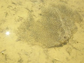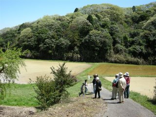 【左】カエルの卵も見つけました。  【右】さいごに里山の織り成す美しい緑の風景をとっくり見てから、帰りました。