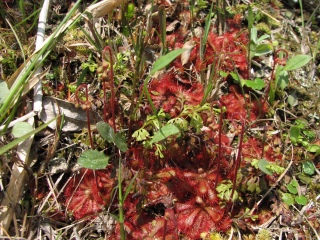 【左】子どもはこんちゅうが大好き  【右】コモウセンゴケが群落状態の土手もありました