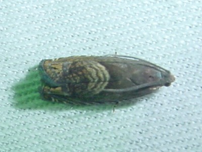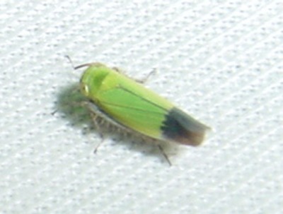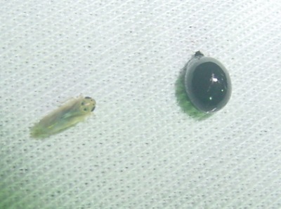 【右】ツマグロヨコバイです。セミと同じ仲間の昆虫で、セミやカメムシのように刺して吸う口を持っています。