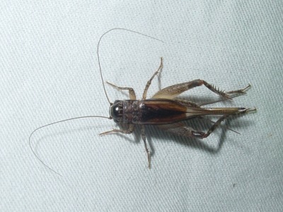 【右】エンマコオロギです。頭が光っている大きなコオロギです。身近なコオロギですので鳴き声を覚えましょう。