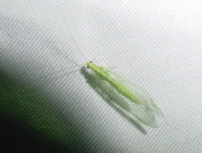 【左】クサカゲロウです。卵はウドンゲの花といわれています。アブラムシをたくさん食べます。