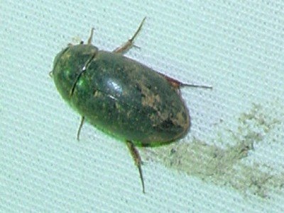 【右】ガムシも灯火採集の常連です。ここに来たのは水田などでよく見られるコガムシかヒメガムシ見たいです。