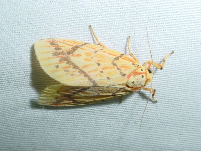 【左】スジベニコケガです。