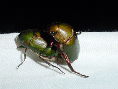 【左】明かりの下にアオドウガネ訪れて結婚式をしていました。