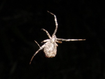 【右】ヒシガタグモでV字形ののあみをつくり、粘りのある玉を付けて、玉に掛かった虫を食べます。