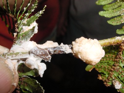 【左】アミガサハゴロモでカシの仲間に付きます。