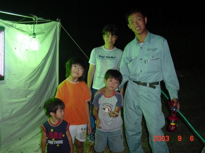 【右】コクワガタをゲットした記念に家族で記念写真を撮りました。
