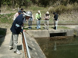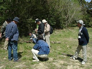 常滑祭りと重なった関係から、参加者は身内の人の方が多数になりました。今回、新聞に案内をお願いしたところ、この募集を見て参加していただいた方も見えました。あいさつの後、ボーイスカウトの野営地に移動しました。鳴き声が上手になった鶯のサエズリが聞こえました。