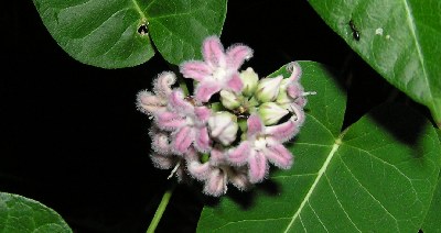 【左】アオマツムシが盛んに鳴いていました。   【右】ガガイモノの花に見とれました。