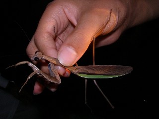 【中】カマキリが木の葉にいました。