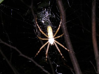 【中】ナガコガネグモが獲物を待っています。