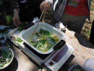 てんぷら・・・タケノコ、モミジ、アケビ、ヨモギ、リョウブ、セイタカアワダチソウ、クズ、ヤブガラシ、ワラビ、タンポポの花、ドクダミ、ハマウド