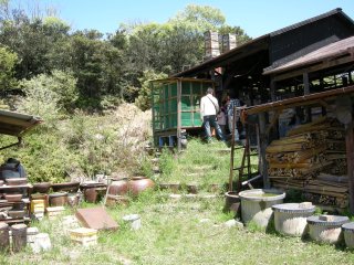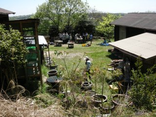 11時過ぎに近くの杉江幸治さんの陶房に着き、採ってきた野草を試食することになり、降幡会員より、種類別に揃えての説明があり、料理にかかりました。ごまあえ、てんぷらなどとても好評でした。午後2時、片付けの後、杉江さんと一緒に記念撮影をして解散しました。