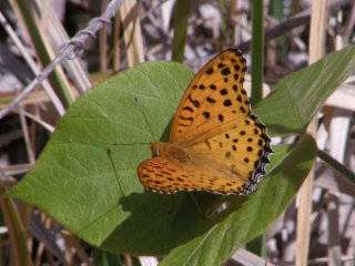 【右】パンジーなどスミレを食べるツマグロヒョウモン(♂)温暖化で北上したとも言われています。