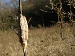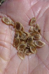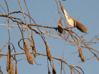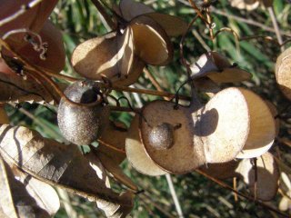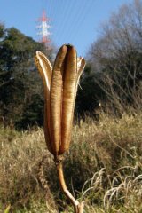 【右】タカサゴユリの果実と種子。種子は風で運ばれます。