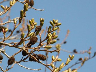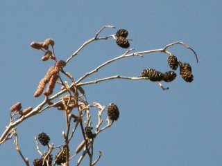 【左】耕作放棄した水田の跡にハンノキが群生していました。