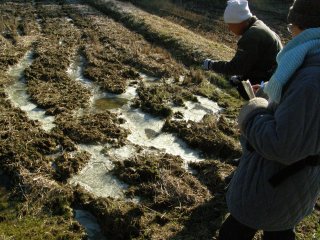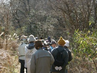【左】セミプロの撮影者も  【右】耕作放棄の谷地を進む