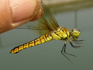 子どもたちは用水に沿ったU字溝の中にいるザリガニやオタマジャクシに興味があり、ハラビロトンボを採って喜んでいました。今年は近くの田んぼの地主さんの了解を得ることが出来ず〔得るチャンスが無く〕田んぼの虫の観察は出来ませんでした。11時半に終了。(記・中井三)