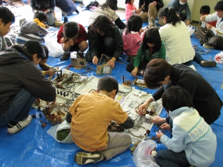 【右】工作会場には指導員の準備したたくさんの材料があります