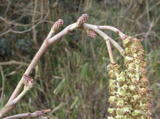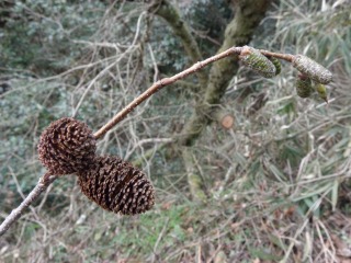【中】ハンノキの雌花(小)雄花(先の房状)