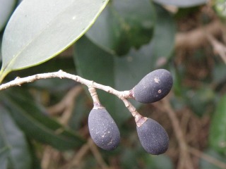 【左】ネズミモ(これは在来のもの、最近、外来のトウネズミモチがたくさんみられます。)