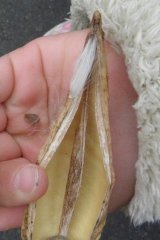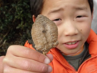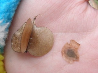 【右】ヤマノイモの裂果と羽が付いた種子(右)