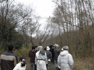 空はやや曇っていましたが、風もあまり無く、観察にはとても良い日でした。「ミサゴ」「文化教室」の方に続いて挨拶をした後、公園の東側の小路に沿って観察をはじめました。「ミサゴ」の方々は倍率の高い望遠鏡を持参の方が多く、遠くの小鳥も観察することができました。 観察路は公園と休耕田に挟まれた小路で、林や草原、田んぼ、笹薮など変化に富んでおり、様々な野鳥の餌場、隠れ家、遊び場などになっていました。耳をすますと木々の間から様々な鳥の鳴き声がし、目を凝らすと小鳥が飛び交う姿が多数観察できたので、これからも、多くの野生生物を育み、人と野生生物が共存する生態系豊かな自然が残ってほしいと思いました。駐車場近くの東屋に戻り、鳥合わせを行い、小雨が降ってきたので11時過ぎに解散しました。(記・斉上)