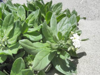 ハマゴウの茎が這って広がる長さを確認したり、オカヒジキの塩味を賞味したり、