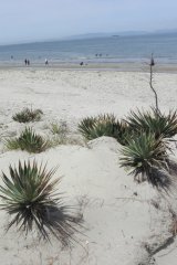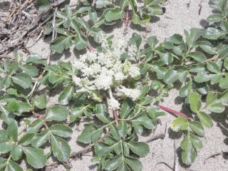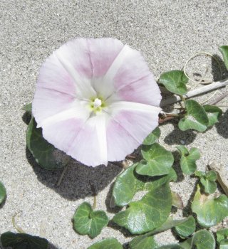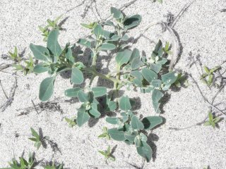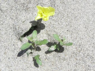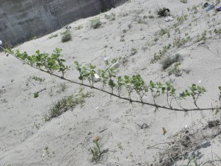 路の観察は蒲池海岸北端より砂浜に降り立ち、本題である海浜植物のコウボウム