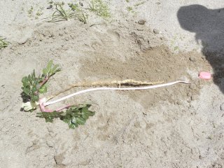 中でも、ハマボウフウの根茎をスコップで試し堀りして深さ長さを実感したり、