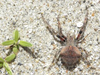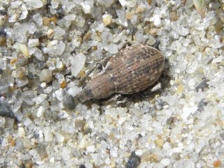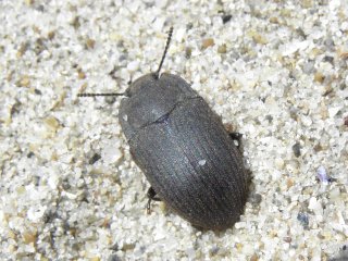 【右】サビヒョウタンゾウムシ?(どちらかというと、サビヒョウタンゾウムシは内陸部に、トビイロヒョウタンゾウムシは海岸部に見られるそうです。砂浜を這っていましたが見分けがつきません)