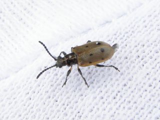 【中】トホシクビボソハムシ(海岸のクコの葉に止まっていました。海岸以外でもクコのあるところにはたいてい見られます)