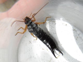 【右】ハサミムシ(昔は自宅近くでも見たような気がしますが、今は海岸でしか見なくなりました)
