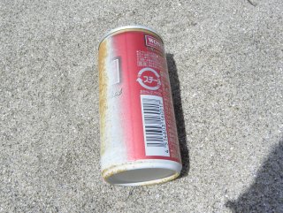 【右】スチール缶、砂に埋まった部分は塗料がはがれず錆が来ていません。