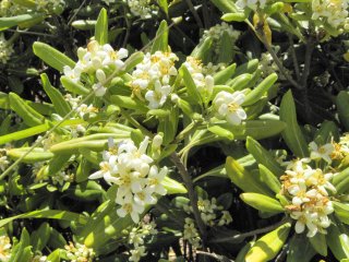 往路の観察は堤防沿いに繁る樹木(ダンチク)や植栽(トベラ)、草本(ハマエン